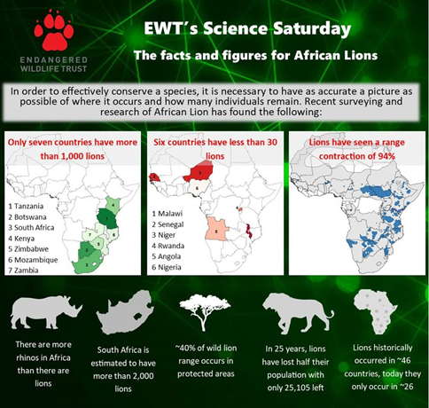 Figure 2. Range and populations of African lion (Endangered Wildlife Trust)